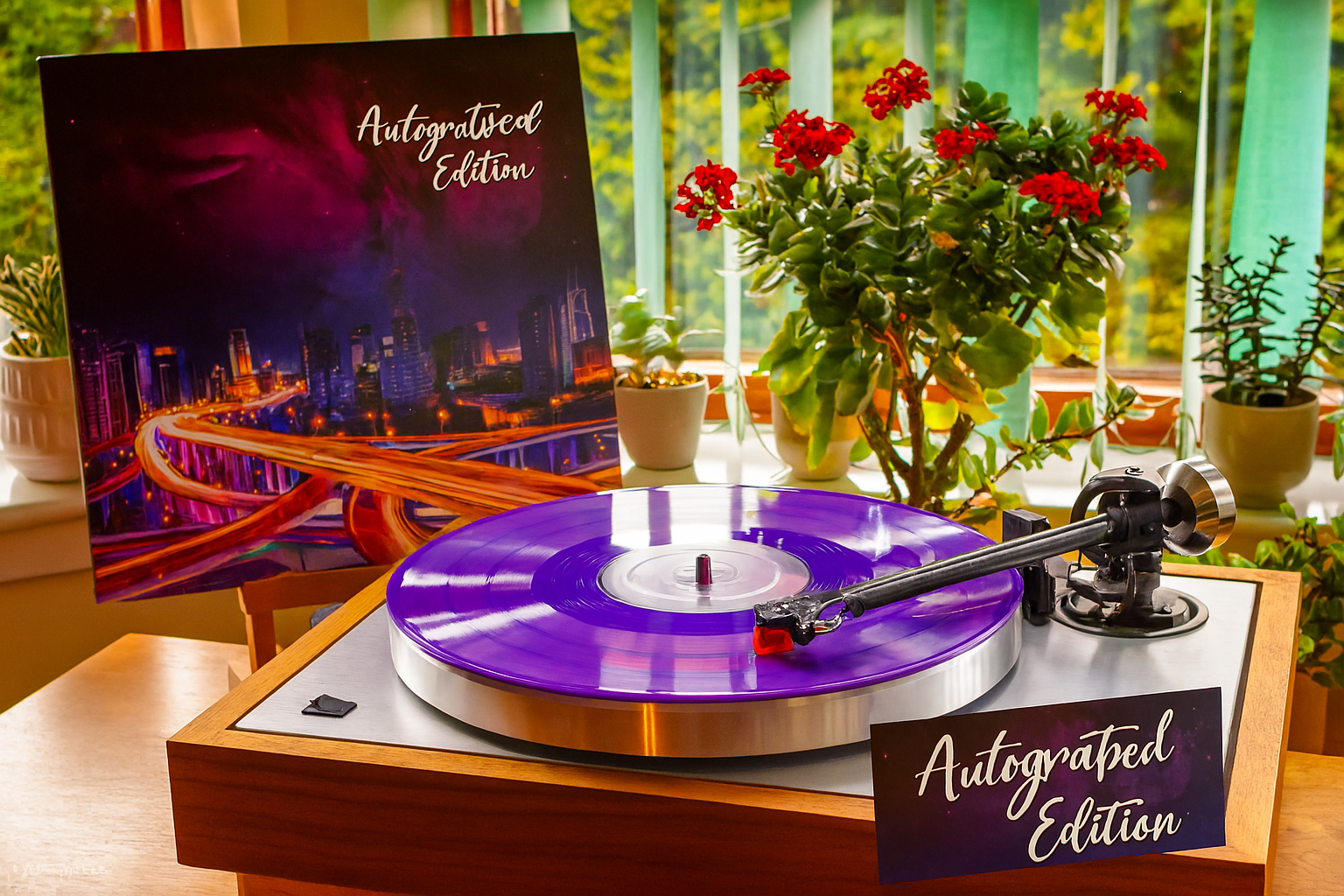 - 🎵 Limited Edition Double Vinyl – pressed on translucent purple & blue discs, with gatefold jacket and custom inner sleeves.