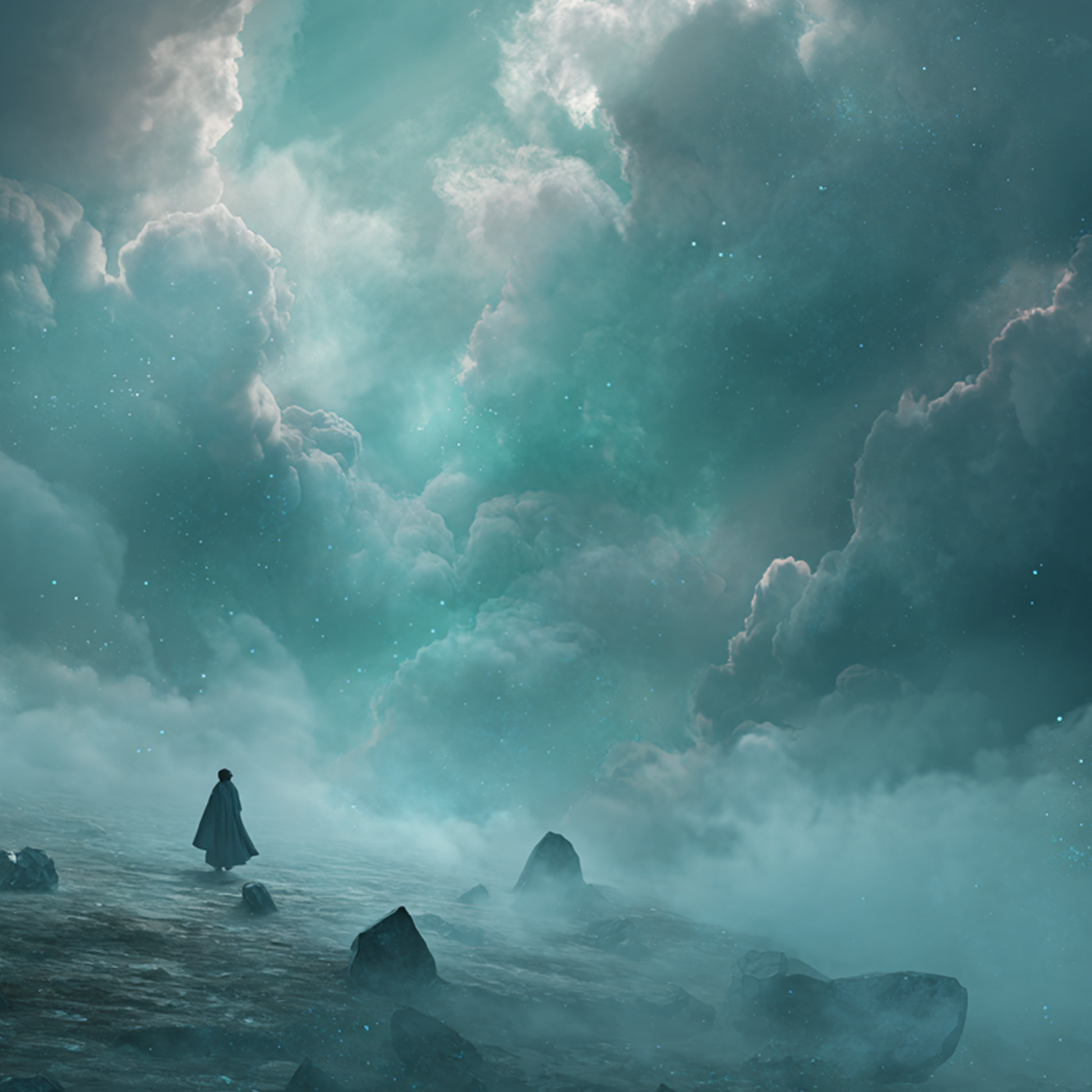 Dark yet calm, intimate yet vast, the music unfolds with cinematic grandness — waves of sound rising and falling like memories stirring beneath the surface. Ethereal voices shimmer through the distance, fragile as light through mist, while a quiet rhythm moves like a heartbeat rediscovered.